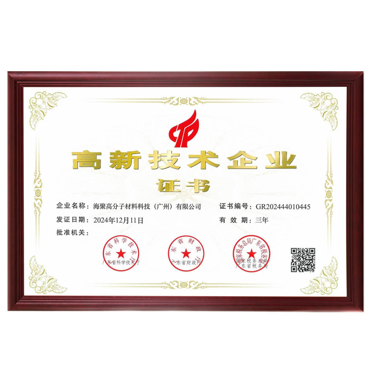 高新技術(shù)企業(yè)證書